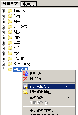 在频道组中国济南上点击右键,可以再新增频道组,也可以添加频道。